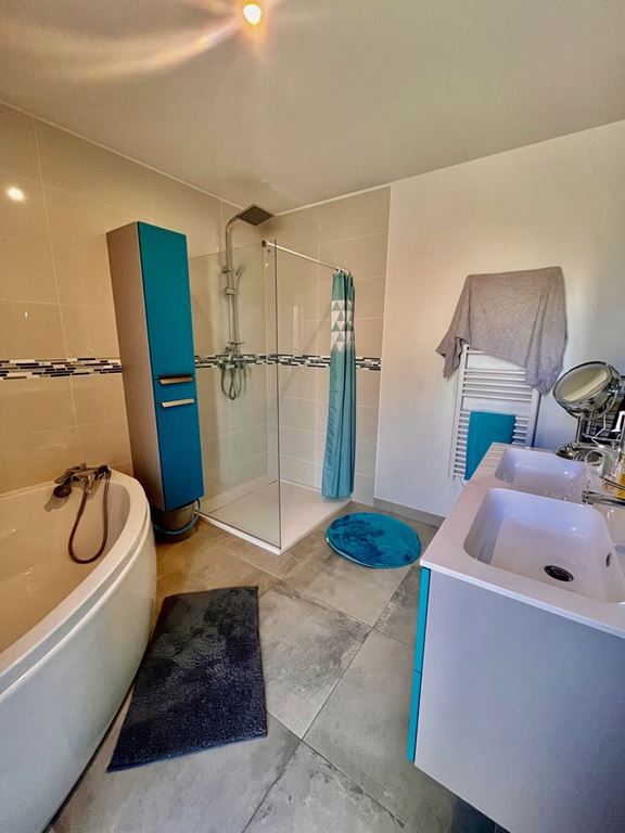 3 chambres, une salle de bains (baignoire et douche), wc, placard.