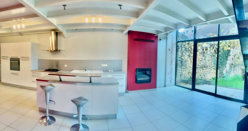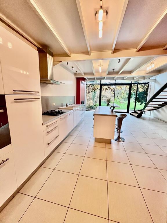 Une entrée, une cuisine équipée ouverte sur une belle pièce de vie ouvrant sur une belle terrasse de 20m²et un jardin, cellier, un bureau, une salle d'eau d'eau avec wc,